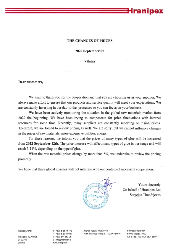 Changes of prices of glues