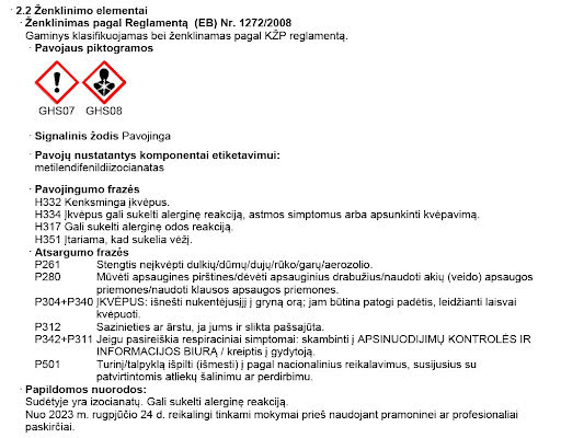 Daugiau informacijos rasite techniniuose ir saugos duomenų lapuose